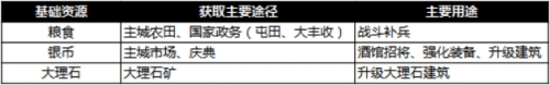 粮食、银币和大理石为游戏中基础资源,在整个势力发展过程中起着极其重要的作用,缺一不可。玩家需要根据不同时期的需求合理分配资源,以备不时之需。